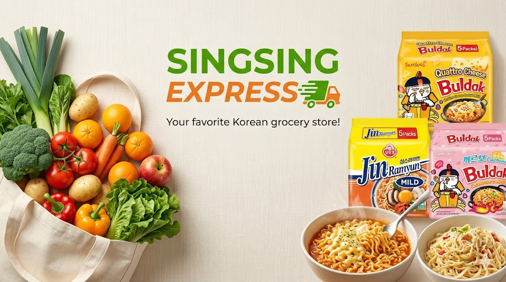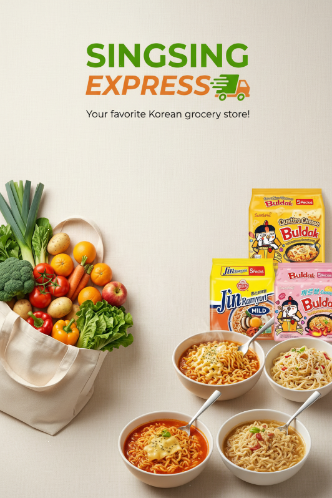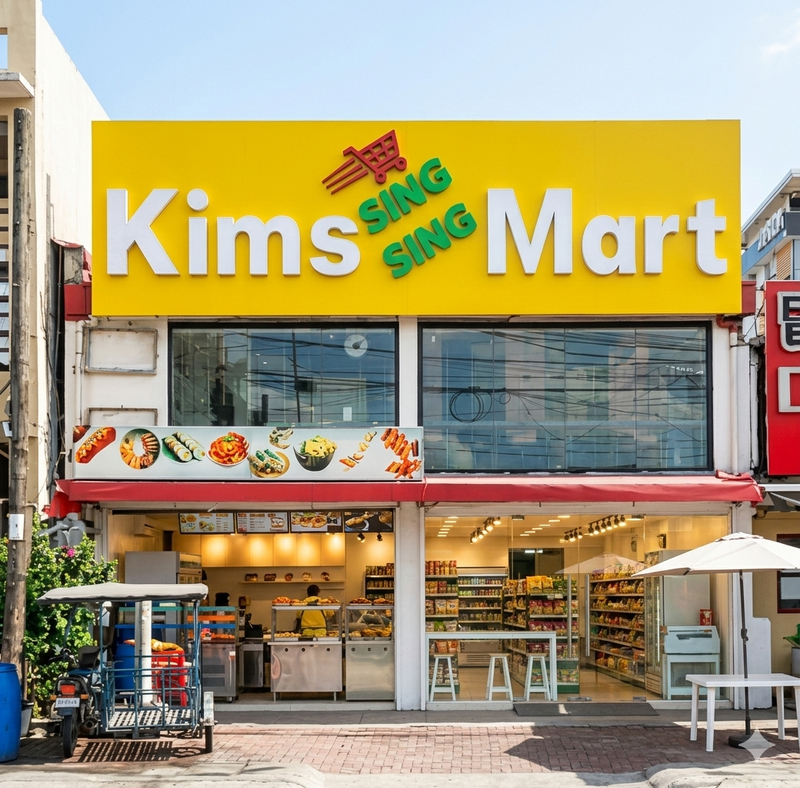 Korean and local vegetables, fruits, and daily essentials.